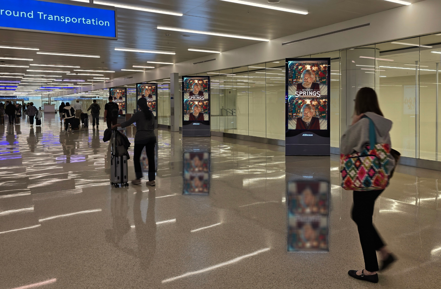 Coca Cola’s festive advertising promotes their local Texas holiday events across IAH, HOU, and DFW to encourage both tourists and locals to check out the festivities while in town. Their creative focuses on promoting specific seasonal experiences, like caroling, ice skating, and photos with Santa, while Disney’s captivating full-motion advertising leverages classic Christmas imagery to showcase the joy-filled experiences they have available for families. These efforts are central to connecting with travelers looking for ways to bond with loved ones during the hectic holiday travel period.