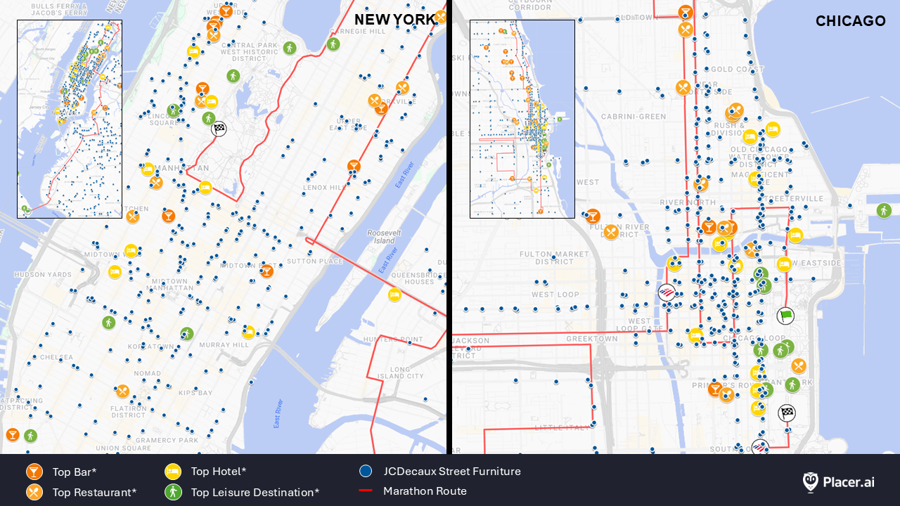 Marathon brand partners are making the most of their marketing spend by amplifying official sponsorships with a strategic combination of race-side and citywide street furniture. These digital and static advertising spaces across including bus shelters, newsstands, and city information panels make up both NYC and Chicago’s largest street level media networks.