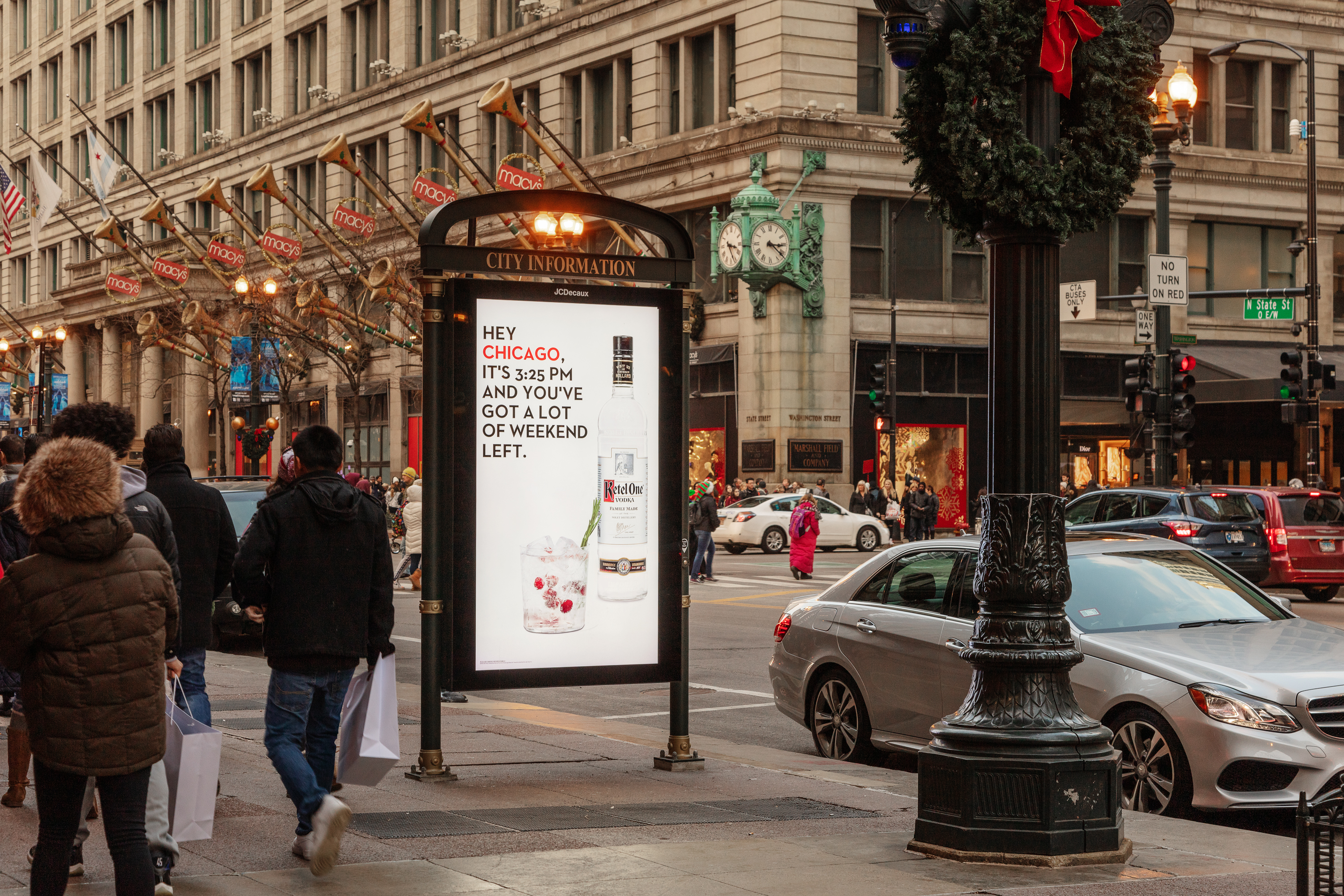 Ketel One provided Chicagoans with dynamic digital messaging, reminding them to celebrate what's left of the weekend with a vodka-mixed cocktail! Time-specific creative paired with 30+ additional branded digital screens kept Ketel top-of-mind for holiday celebrations.