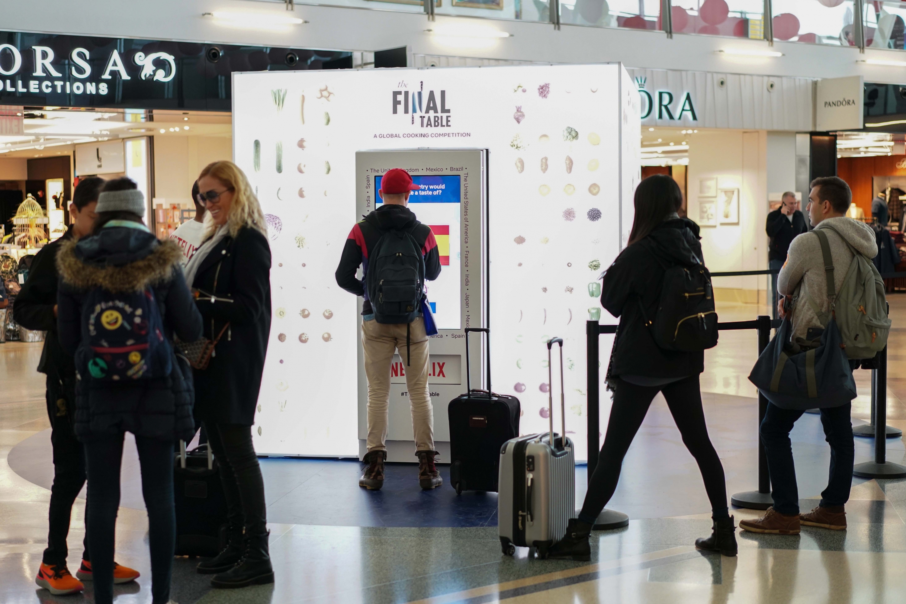 To promote its show, “The Final Table”, Netflix filled their culinary cube with traditional food from Mexico, Spain, UK, Brazil, India, the U.S., Italy, France and Japan – regions that were featured on the show. Travelers learned about global cuisine & viewed a show teaser!