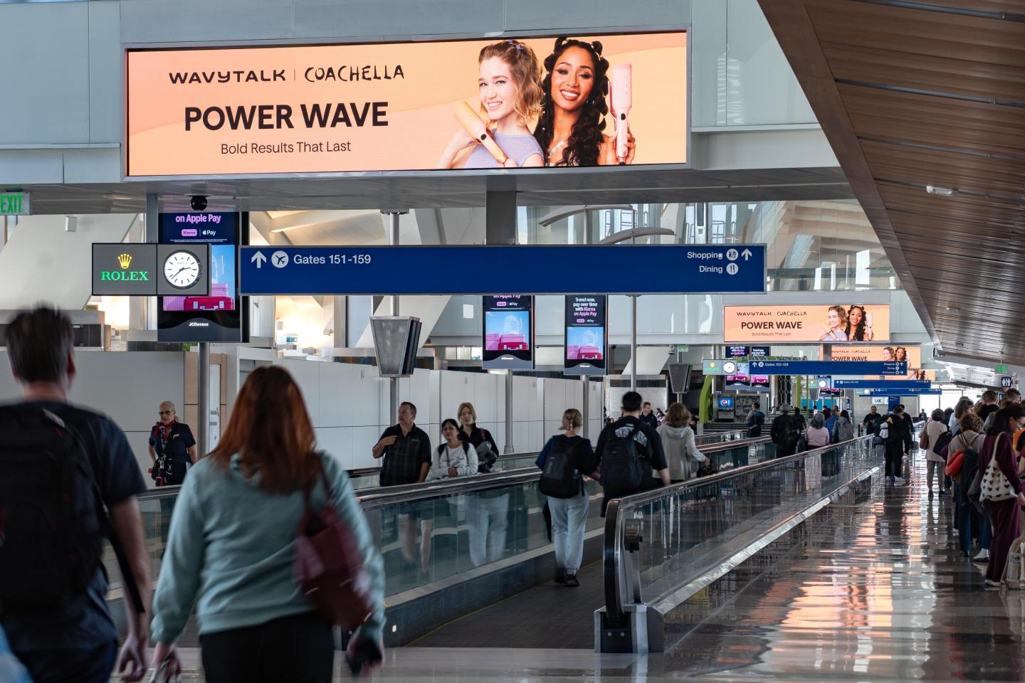 LAX serves as a critical touchpoint for domestic and international festival-goers, with Terminal B seeing a staggering 1.5 million monthly passengers. Brands like WavyTalk and Hugel Florent have capitalized on this massive traffic by securing placements in high-density areas. Hugel Florent, a first-time JCDecaux advertiser, specifically targeted Terminals 7 and 8 via the 20-screen Prestige Digital Network, capturing the influx of travelers from United Airlines, the airport’s second-largest carrier. With WavyTalk displaying their hair models throughout the terminal and on socials, they are seamlessly priming their audience with Coachella already top-of-mind. This is a data-driven move as 69% of consumers are more likely to engage with ads relevant to their current environment or activity according to YouGov. As travelers use their transit time to plan outfits and view festival content, JCDecaux’s digital network allows brands to integrate directly into the Coachella narrative at a moment of peak consumer receptivity.