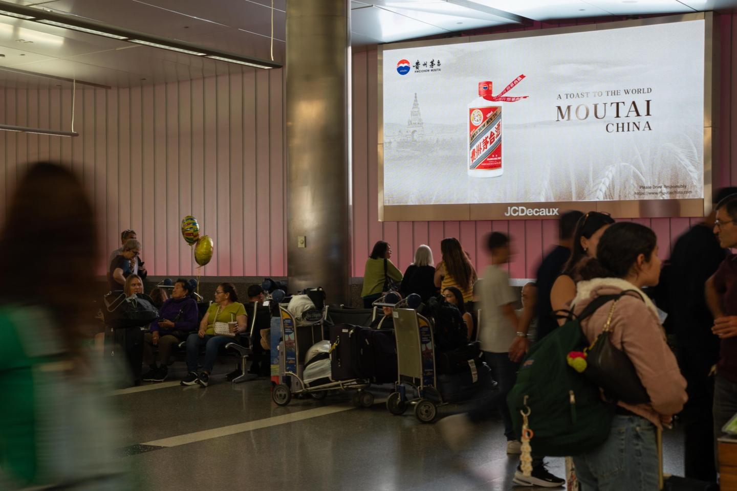 In the luxury spirits category, the renowned Chinese brand Kweichow Moutai is making significant moves by prioritizing direct access to affluent global travelers. At LAX, the brand executed a high-impact campaign located at arrival sites of Terminal B, leveraging JCDecaux’s Digital Spectacular network to achieve 100% visibility with international arrivals.